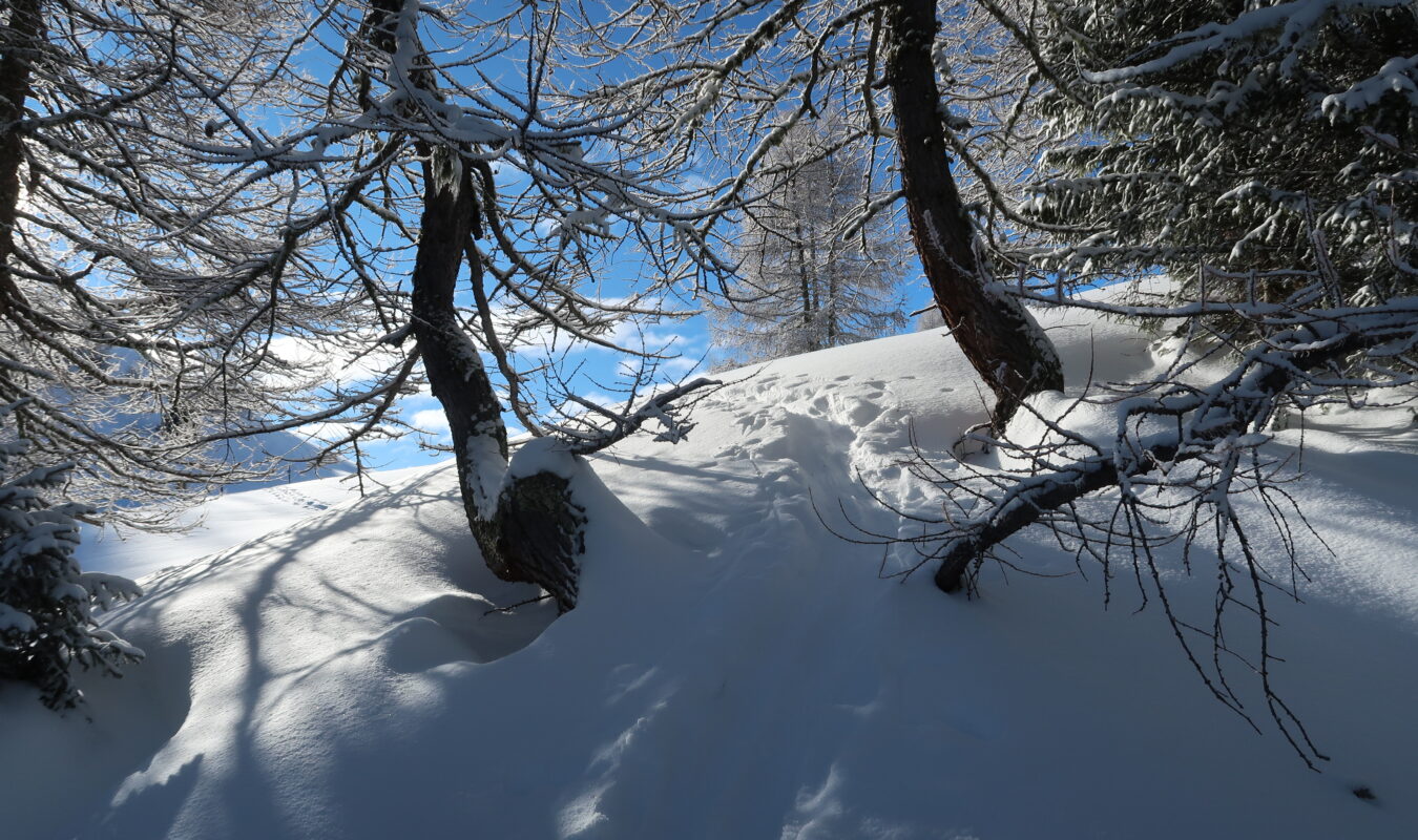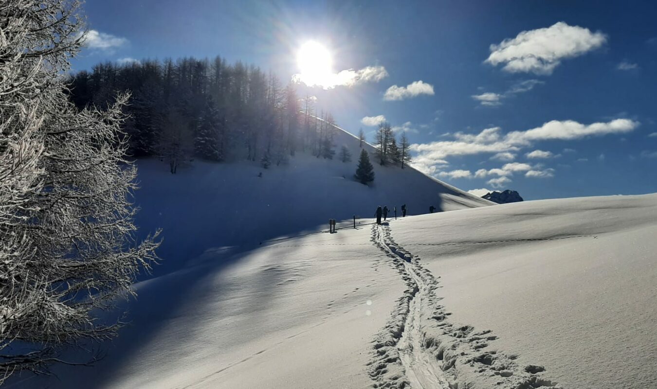 Beau temps, belle neige poudreuse, bonne trace, personne dans le vallon de Pertuité, belle ambiance, un vin chaud au retour !
