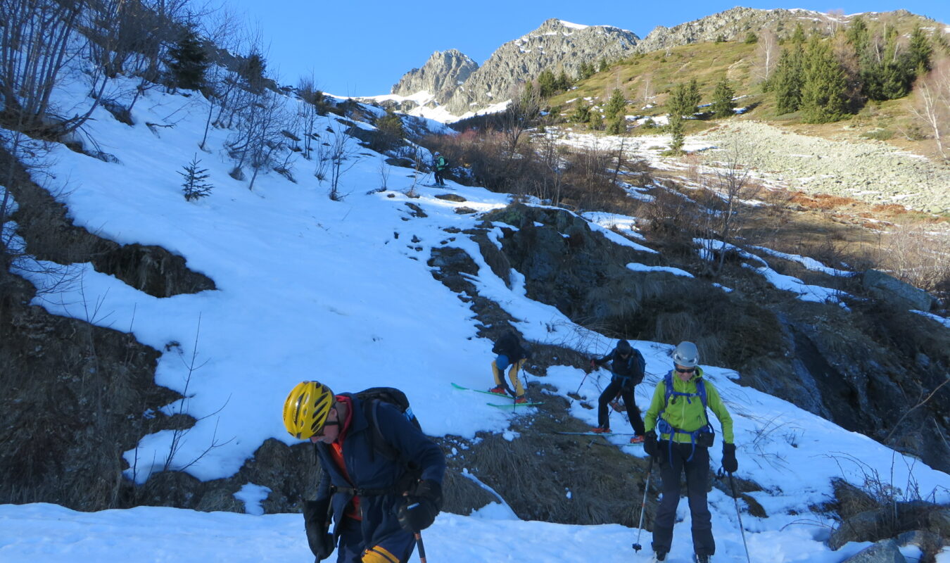 Départ skis aux pieds mais les couteaux ont été nécessaires dés le début.