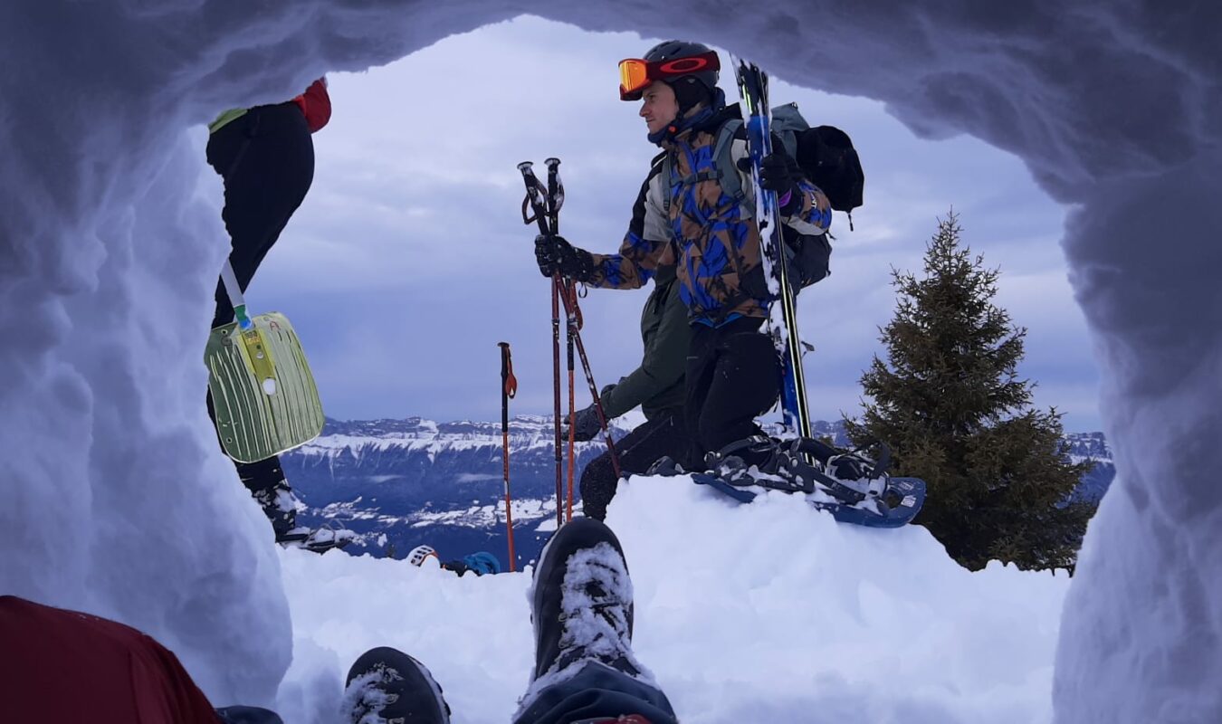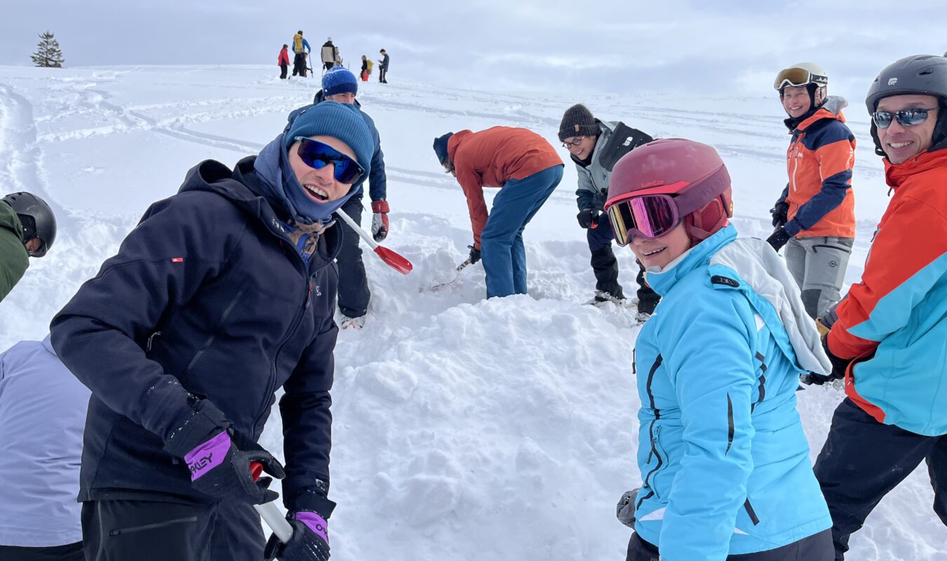 Exercices d’application sur le terrain: organisation du groupe, recherche DVA, sondage, pelletage, réalisation d’un igloo