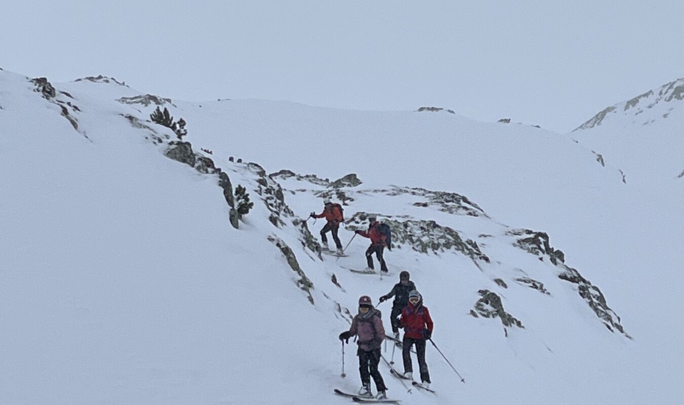 Une belle ambiance hivernale avec une légère chute de neige, réduisant le visibilité du relief en haut.