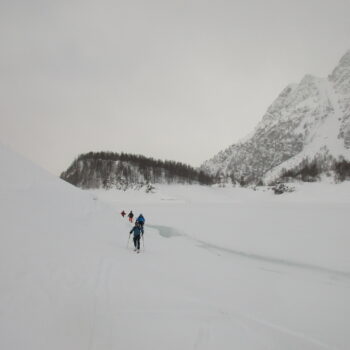 des conditions difficiles : vent violent et permanent, grosses accumulations de neige . Modifications de l’itinéraire pour assurer la sécurité . de longues étapes et plus de dénivelé, mais au final un raid actif avec de beaux moments.