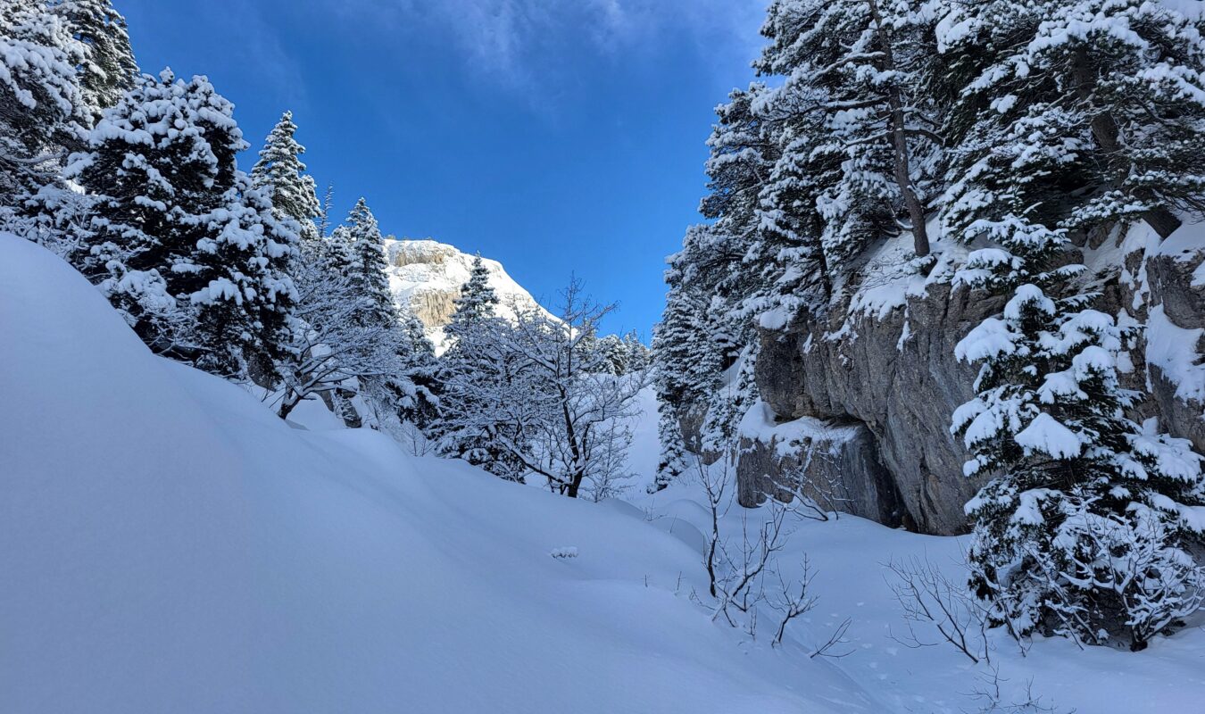 Hormis le sommet, pas de cailloux et une très bonne neige fraiche de la veille.