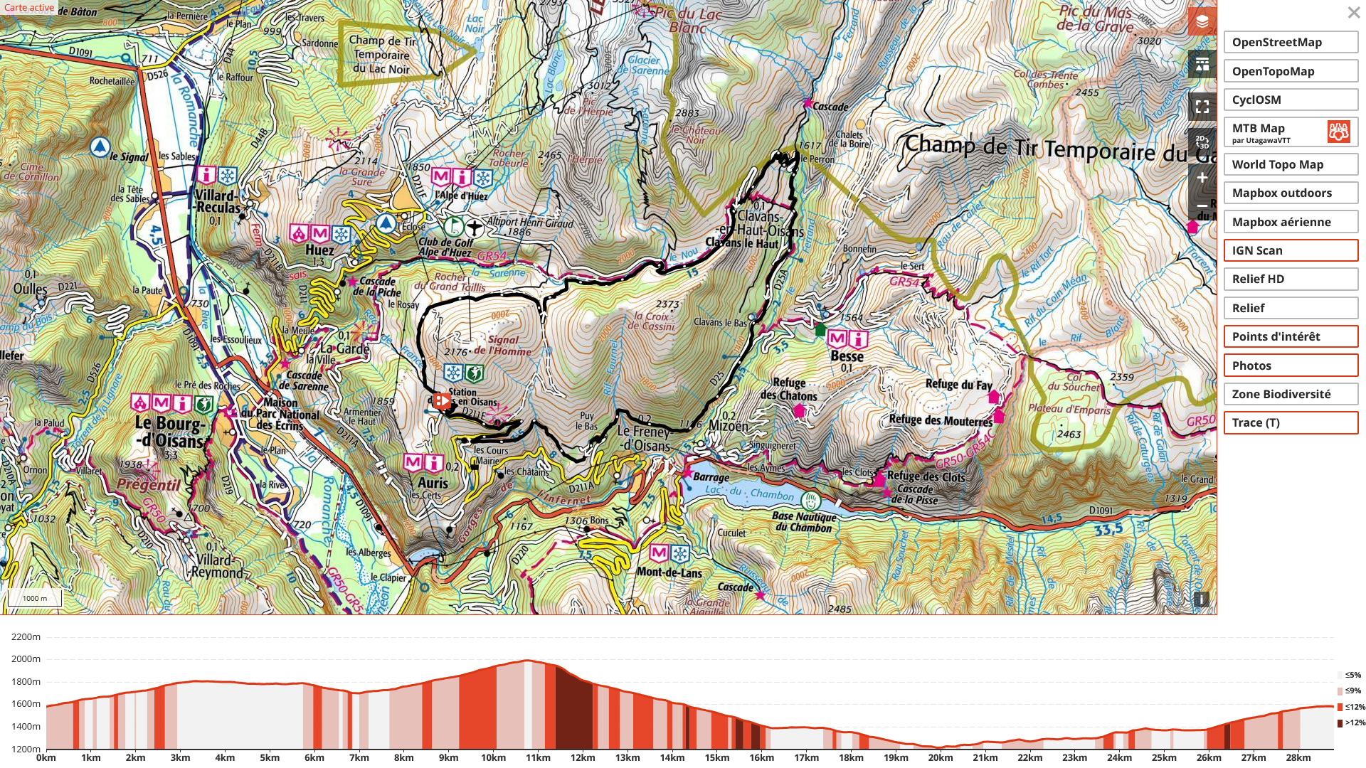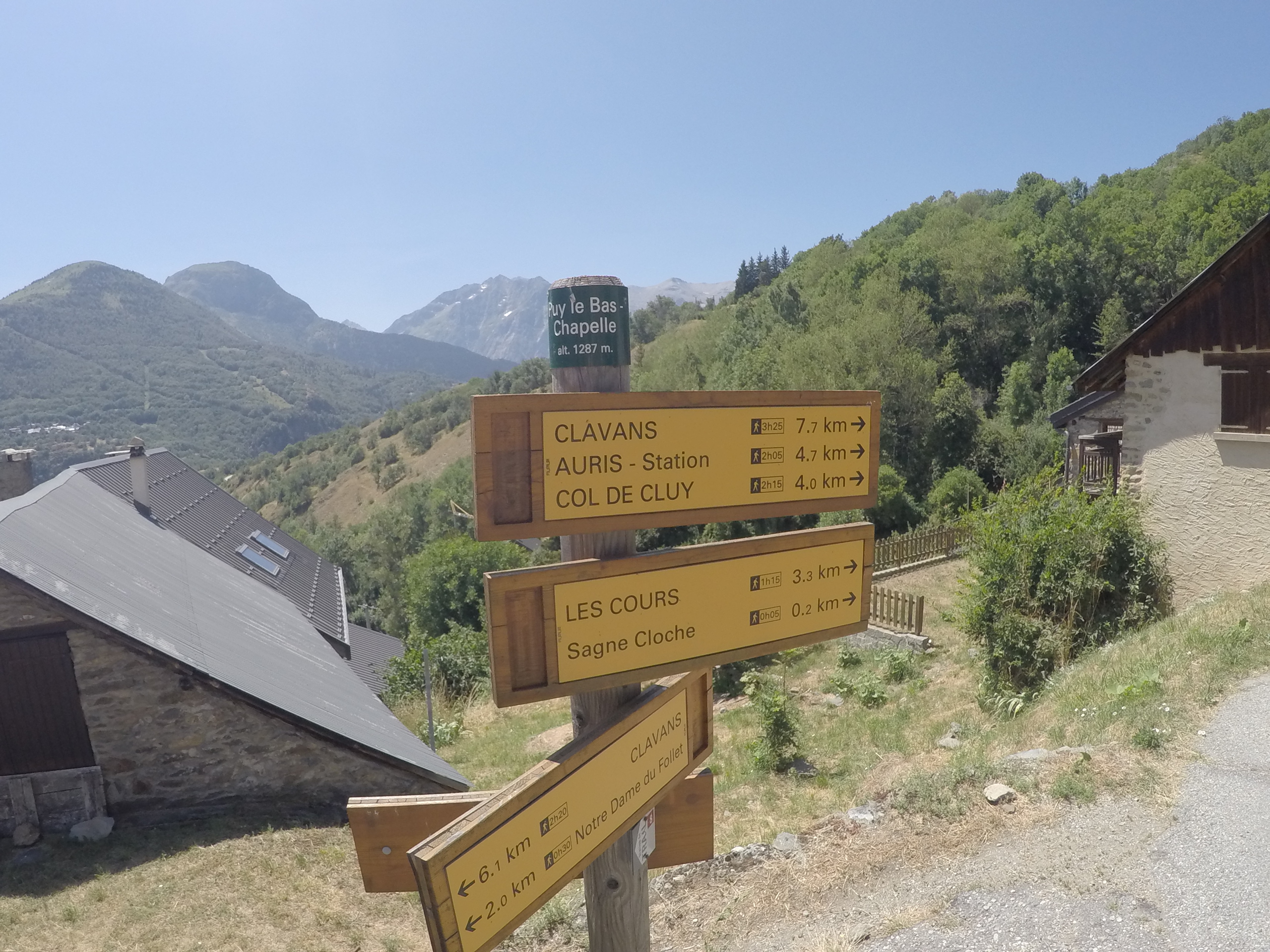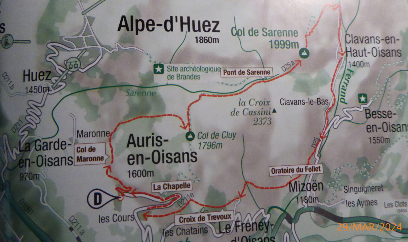 PUY le HAUT (1339 m).. CHAPELLE SAINT GIRAUD (1527 m). AURIS ( STATION 1600 m). Col de MARONNE. COL de CLUY (1796 m). COl de SARENNE (1999 m). CLAVANS le BAS. CIRCUIT N° 23 VTT en OISANS